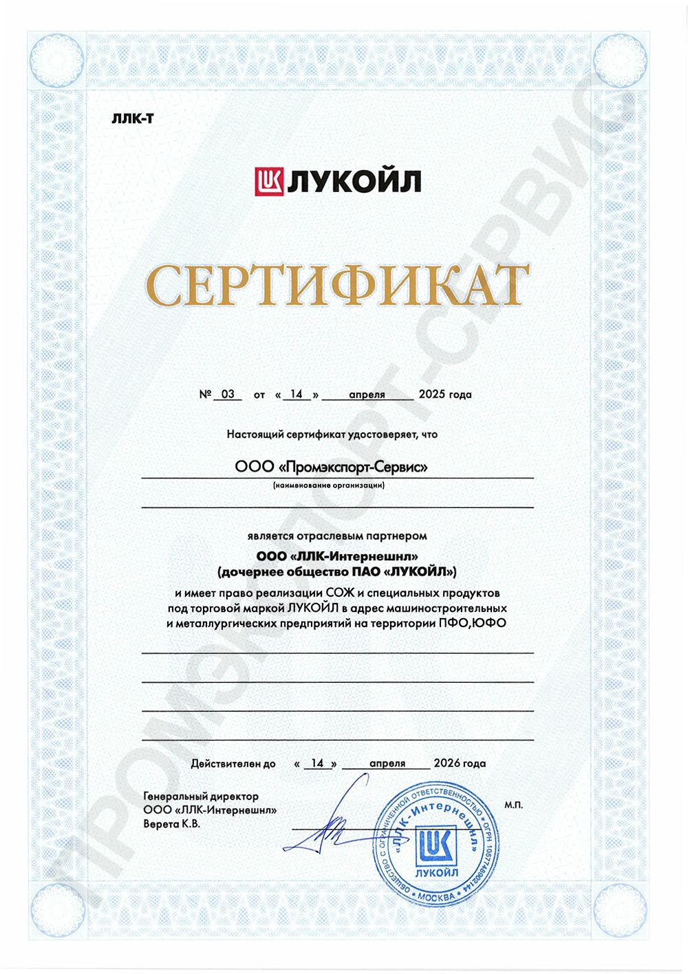 ООО «Промэкспорт-Сервис» отраслевой партнёр по реализации смазочно-охлаждающих жидкостей ЛУКОЙЛ в Приволжском и Южном федеральных округах.